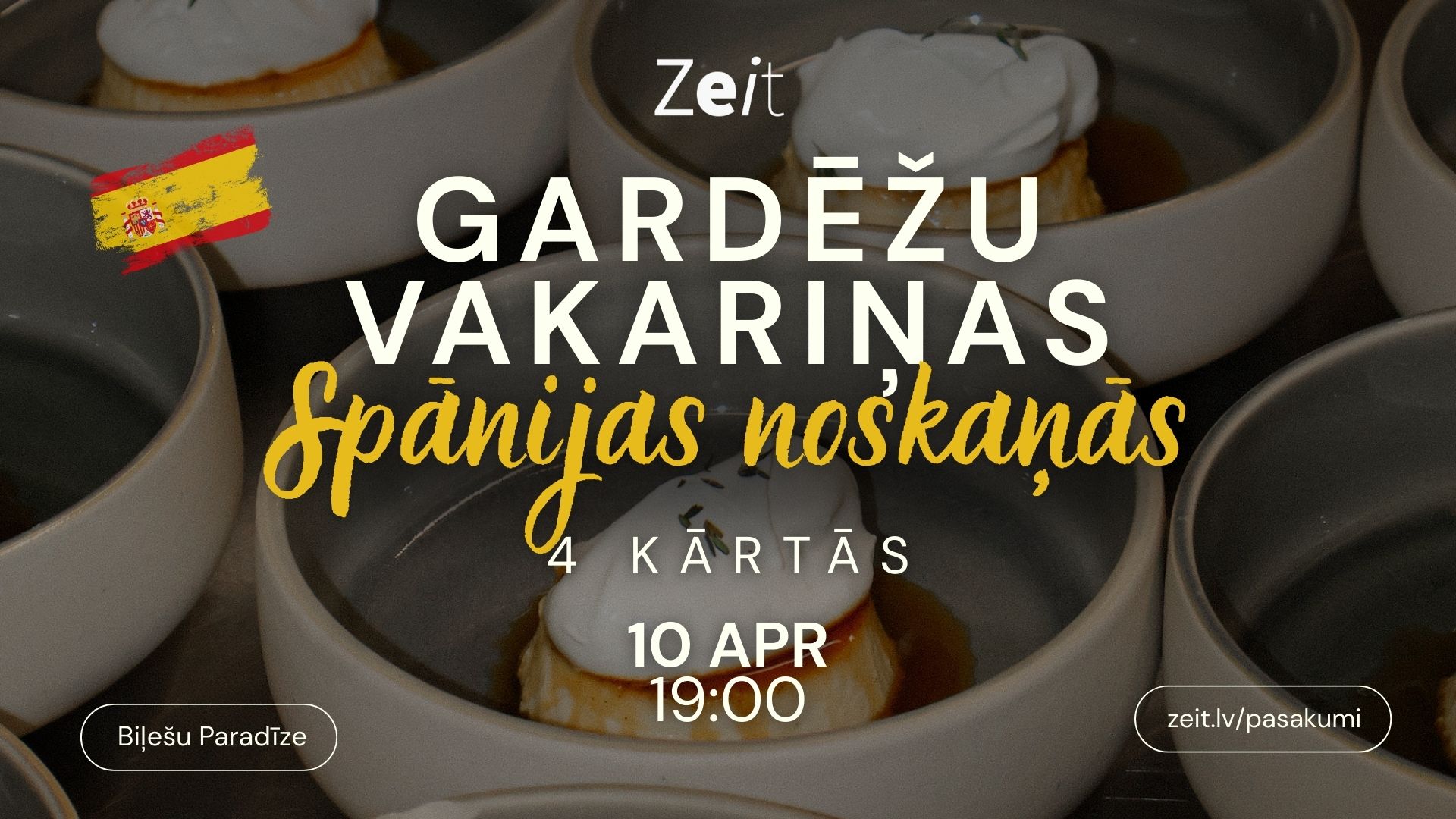 10. aprīlī plkst. 19.00 ielūdzam uz izsmalcinātām un ar mīlestību gatavotām Gardēžu vakariņām Spānijas noskaņās! Tas būs izsmalcināts vakars, kurā garšas,